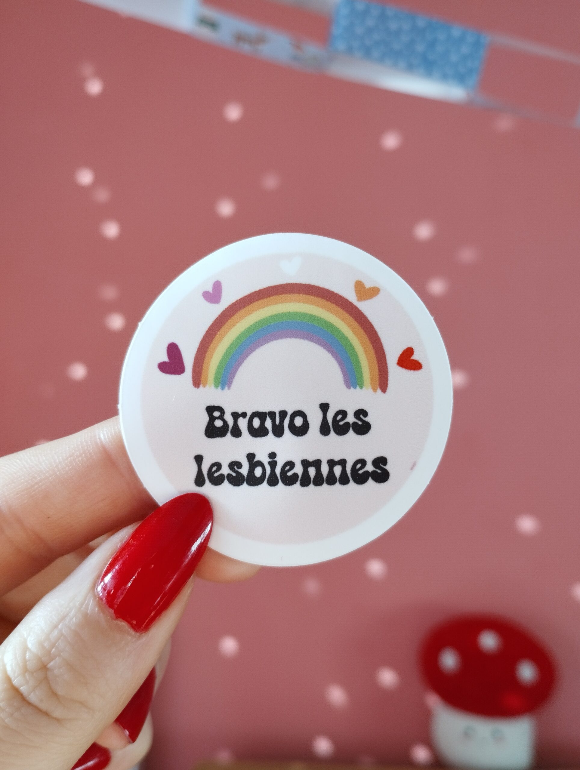 Stickers 5x5cm environ, papier épais, résistant à l’eau