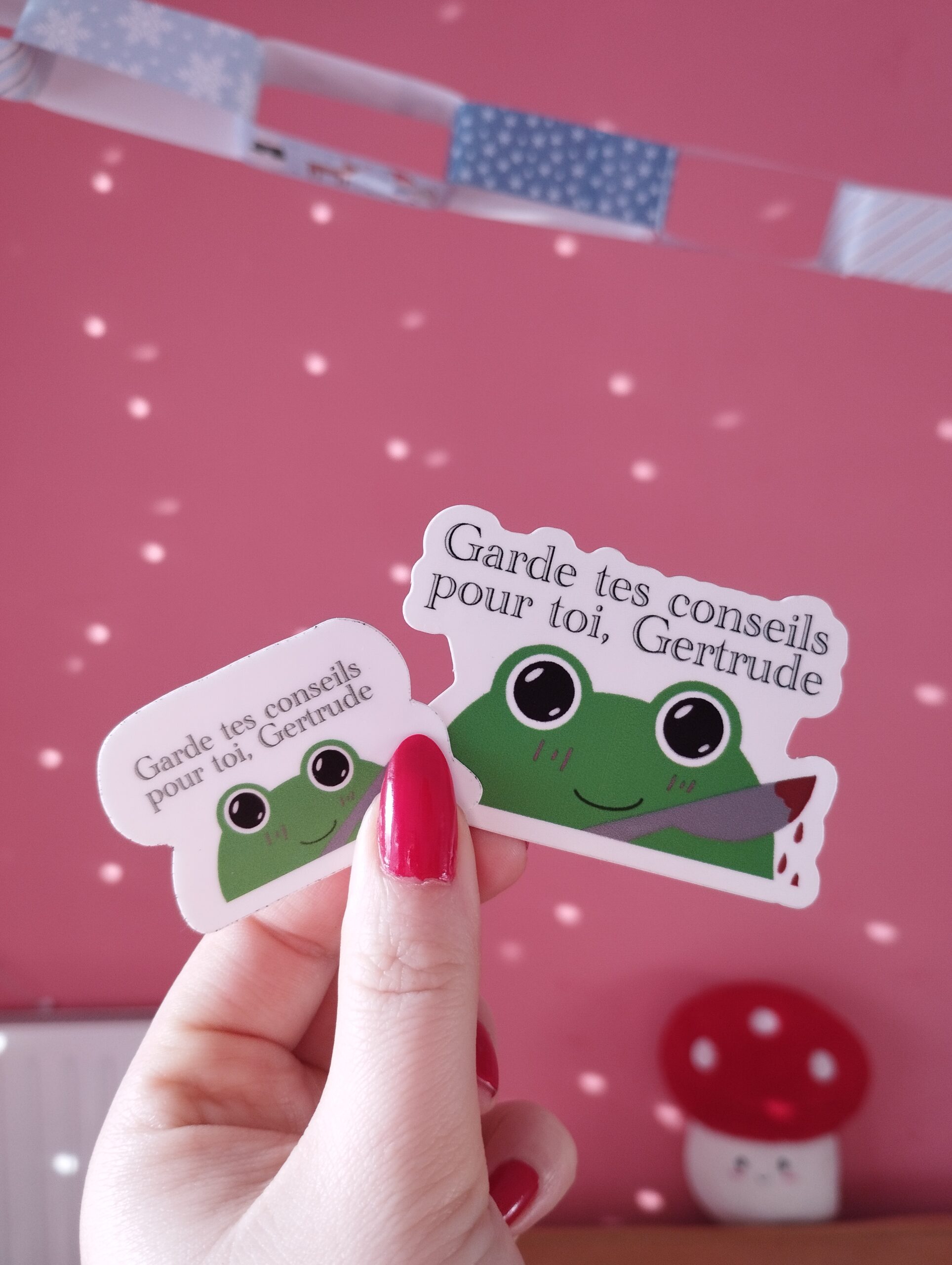 Stickers 7x7cm ou 5x5cm environ, papier épais, résistant à l’eau