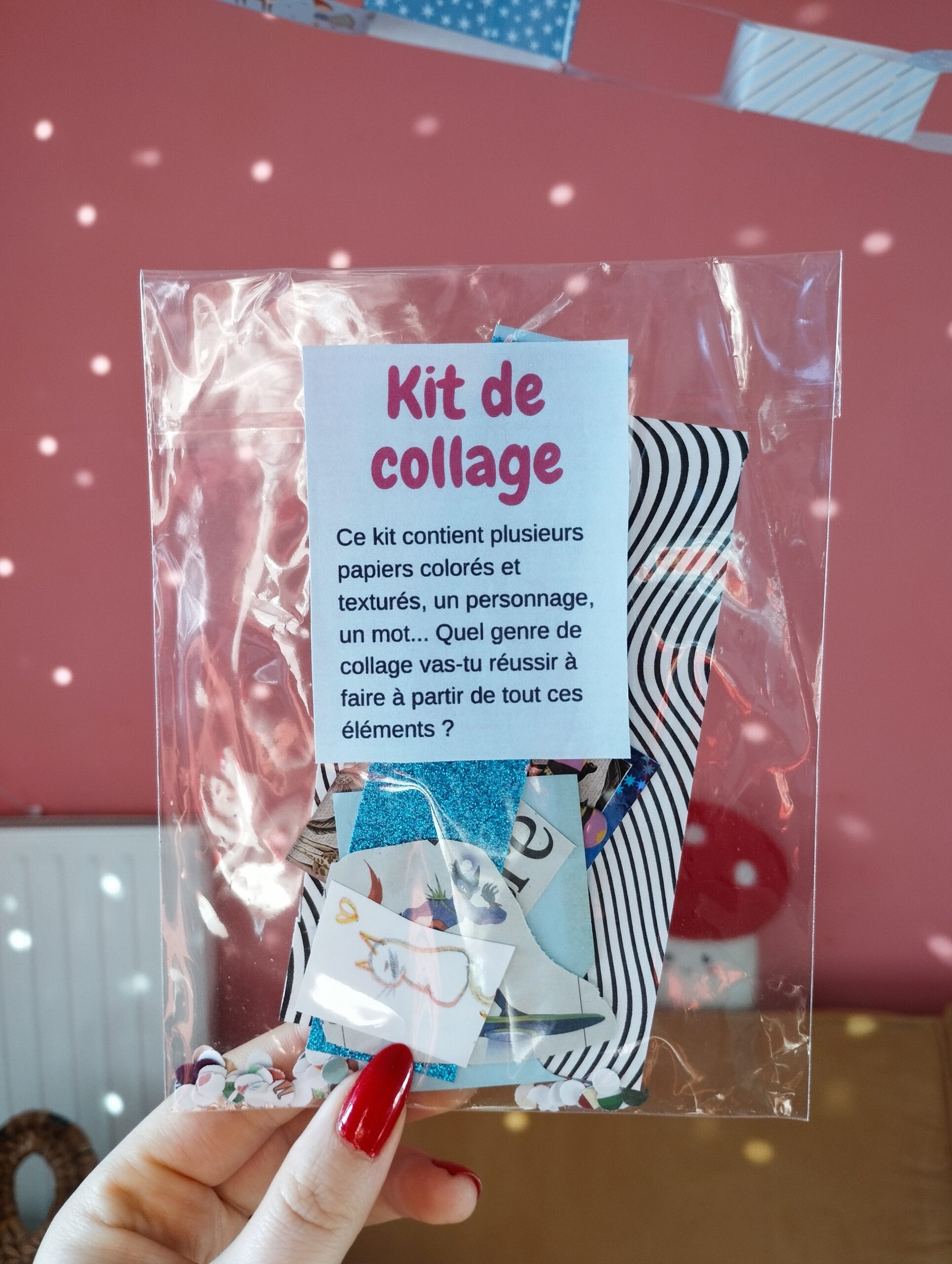 Kit de collage avec des jolis papiers, des dessins, un mot, un personnage… Une 10aine d’éléments en tout ! Parfait pour se guider et s’initier au collage sans aucune barrière !
