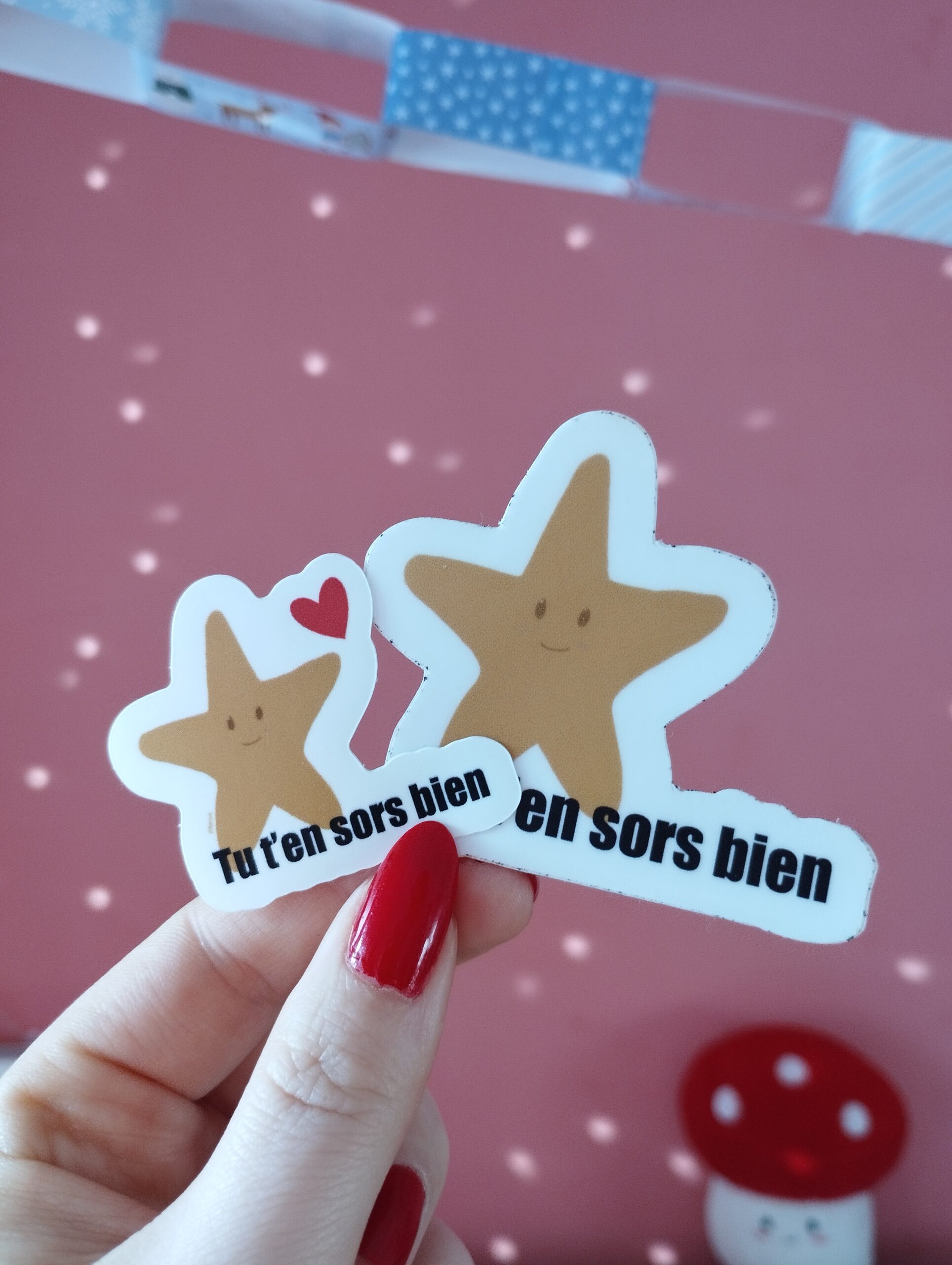 Stickers 7x7cm ou 5x5cm environ, papier épais, résistant à l’eau