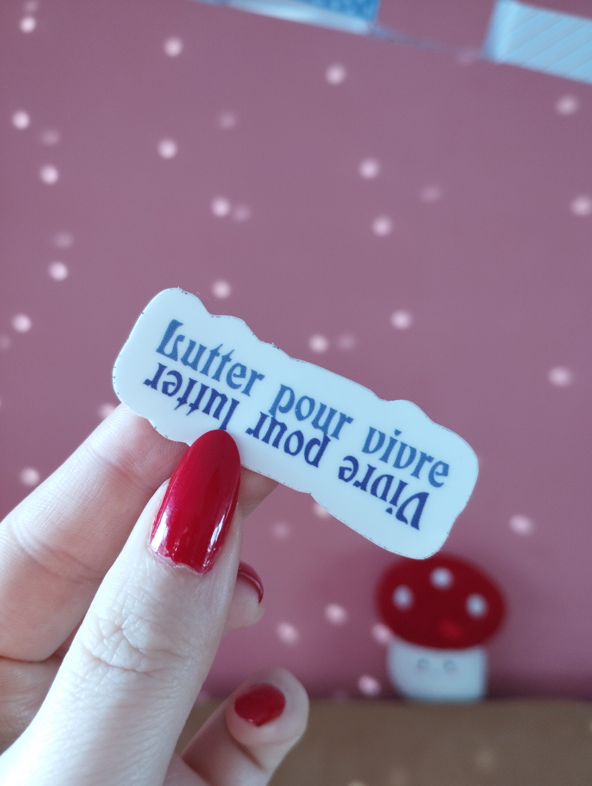 Stickers 5x5cm environ, papier épais, résistant à l’eau